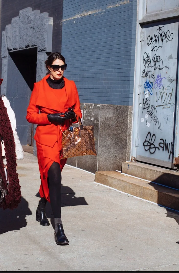 In terms of texture and shape, big voluminous fur coats took over the street, maybe because of the severe temperature drop. Pants were worn fitted and dresses long with ankles showing preferably.